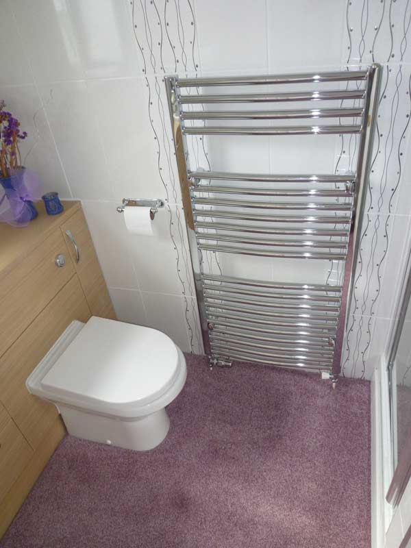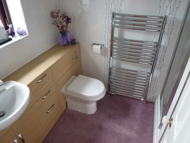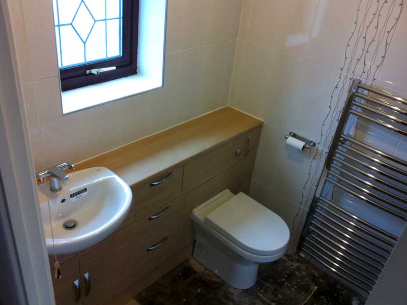 Extended both the roof and the wall of the garage forward. Internally removed dated en-suite and installed new shower, washbasin, WC and units. Re-tiled the whole room.