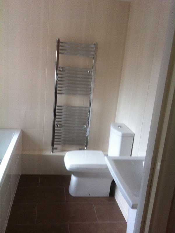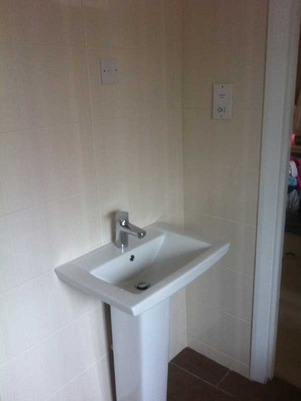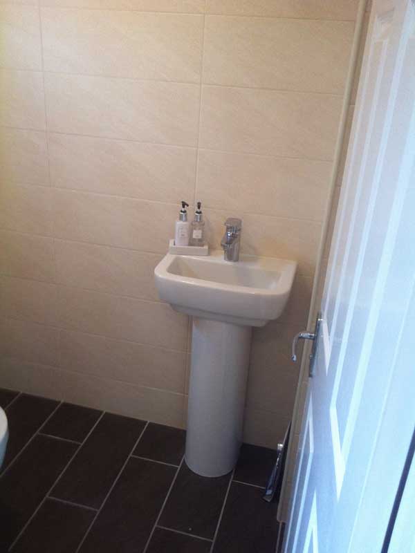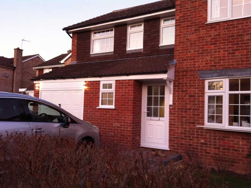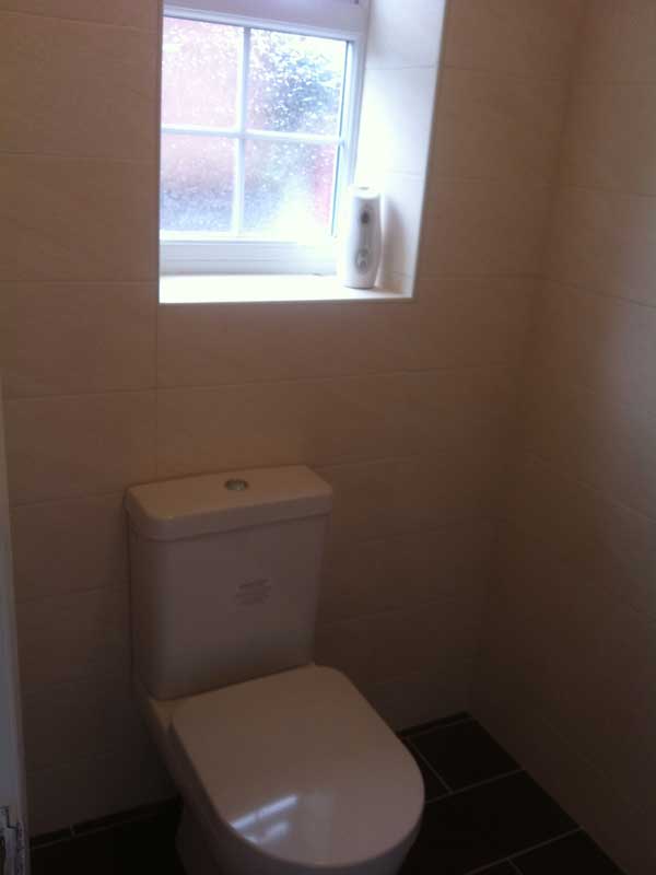 Removed old porch ready for the new extension. Built the new extension to the front of the property. Internally removed existing staircase, replaced with a new solid oak staircase rising in the opposite direction to make more room for en-suite. Fitted full en-suite upstairs. Installed a WC downstairs within the porch area.